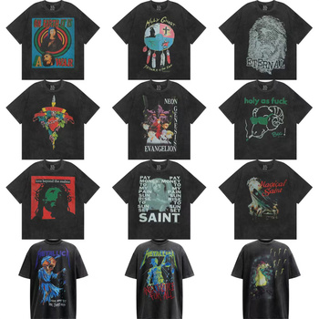 Saint Retro High Street Vintage verano Camiseta de manga corta para hombres mujeres camisas casuales de punto desgastado 100% algodón de moda